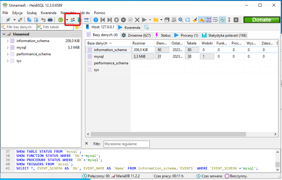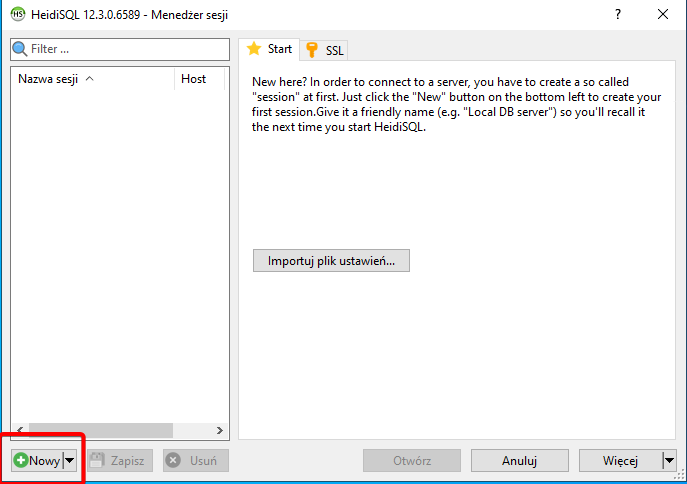 - Po instalacji uruchom HeidiSQL na serwerze