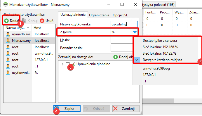 Dostęp zdalny do serwera MariaDB