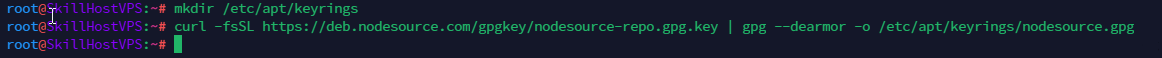 curl -fsSL https://deb.nodesource.com/gpgkey/nodesource-repo.gpg.key | gpg --dearmor -o /etc/apt/keyrings/nodesource.gpg