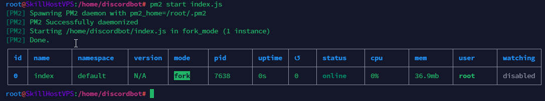 Jeżeli bot nie uruchomił się na tym etapie, napraw wszystkie występujące błędy.