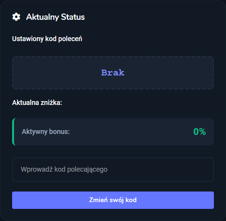 - W miejscu „Wprowadź kod polecającego” wpisz kod, którego chcesz używać, a następnie zatwierdź zmianę, klikając „Zmień swój kod”.