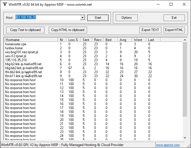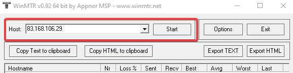 hostwpisz IP serwera, z którym masz problem i kliknijStart.