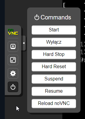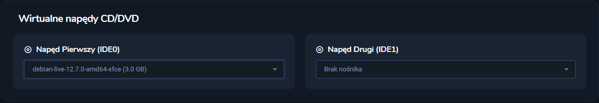 - Przejdź do konsoli VNC i w napędzie pierwszym wybierz obraz LiveCD.