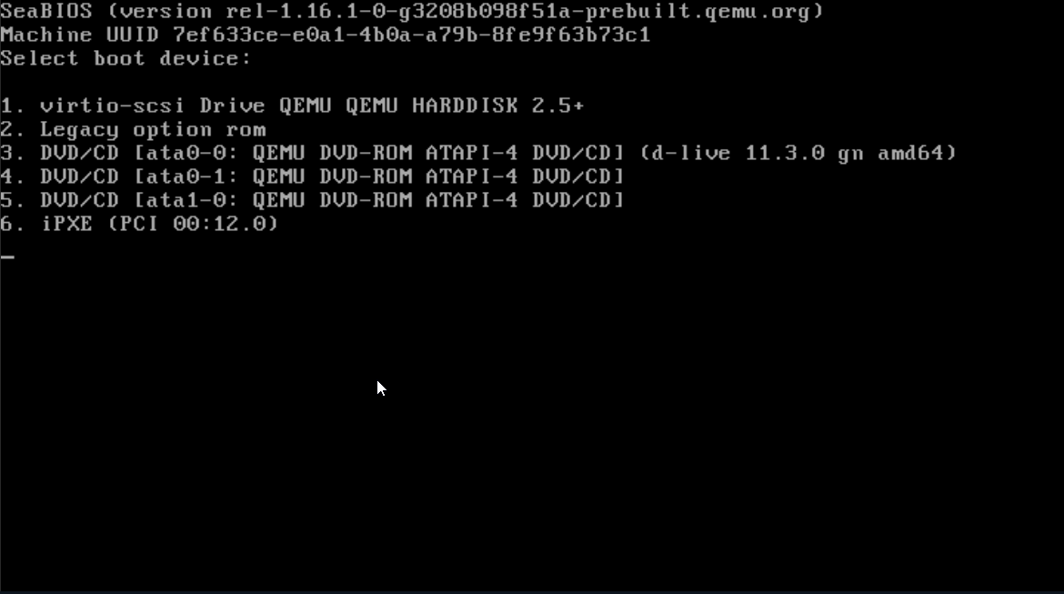 Klawisz ESC należy nacisnąć bardzo szybko – dokładnie w momencie, gdy na ekranie pojawia się logo Proxmox. Jeśli przegapisz ten moment, konieczne będzie ponowne wykonanie Hard Reset.