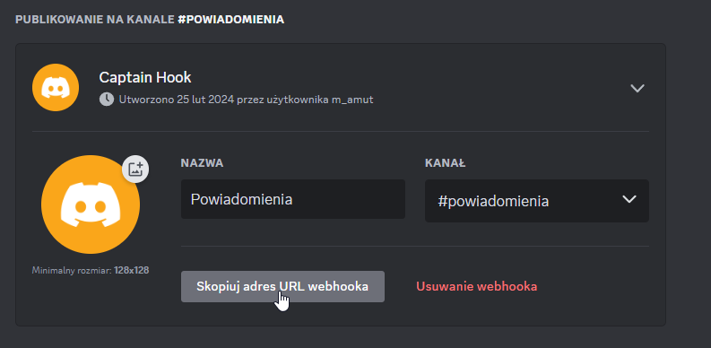 - Kliknij Zapisz Webhook i sprawdź, czy na discordzie pojawiło się powiadomienie.