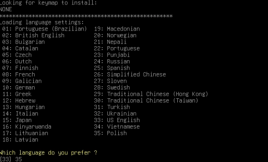 - Następnie wybieramy język według własnych predyspozycji. Wpisz 35 dla języka Polskiego.