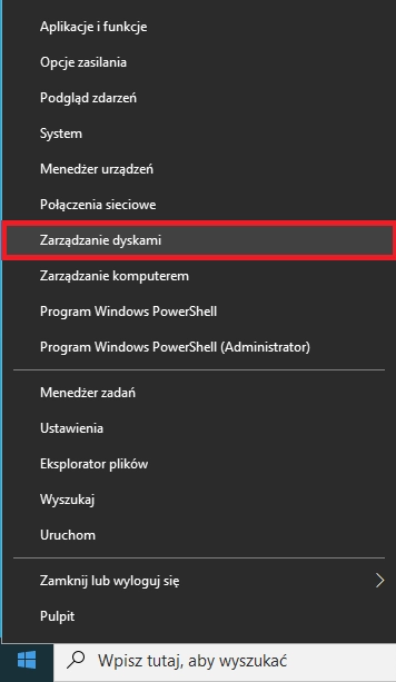 - Po zalogowaniu przechodzimy do aplikacji „Zarządzanie dyskami”.